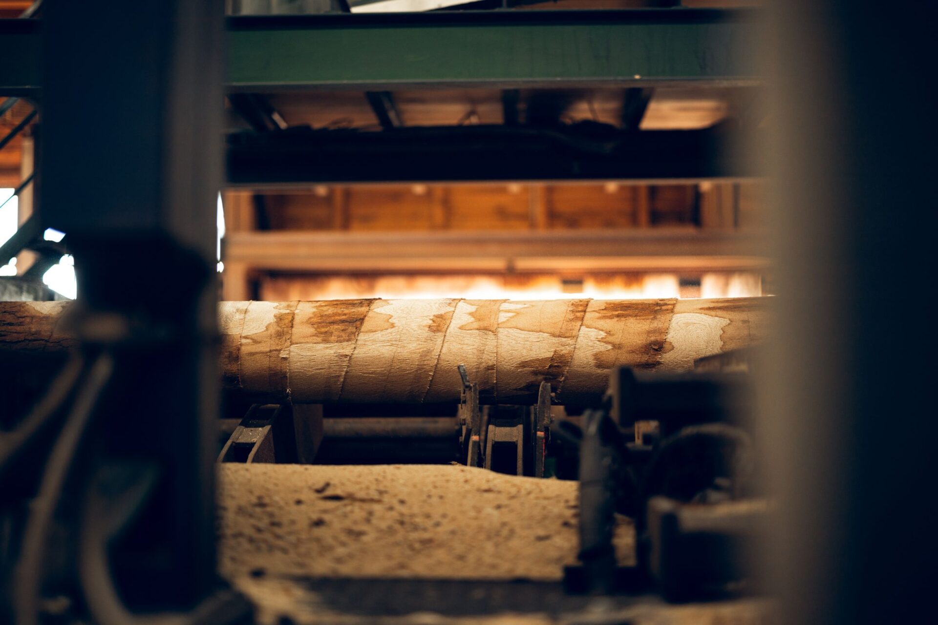 Odkorňovací stroj a detektor kovů Baljer-Zembrod – pro důkladnou přípravu kulatiny před zpracováním.